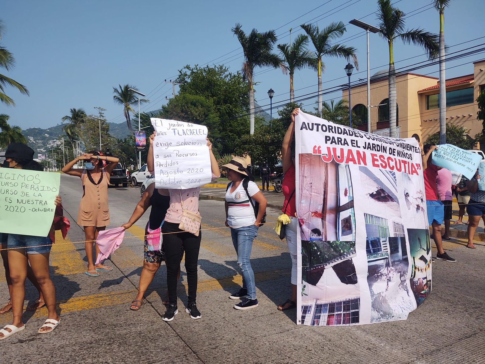 Acapulco,Gro., a 07 de noviembre del 2022.-Padres de familia del Jardín de Niños Tlacahele de la colonia Alborada realizaron un bloqueo total desde las 9:00 de la mañana sobre el bulevar de las naciones a la altura de PROTUR.