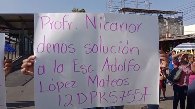 Por último, en las pancartas de los padres de familia se pueden leer consignas como: “Exigimos maestro para nuestros hijos” y “Primaria Adolfo López Mateos exigimos solución a la falta de maestros”.