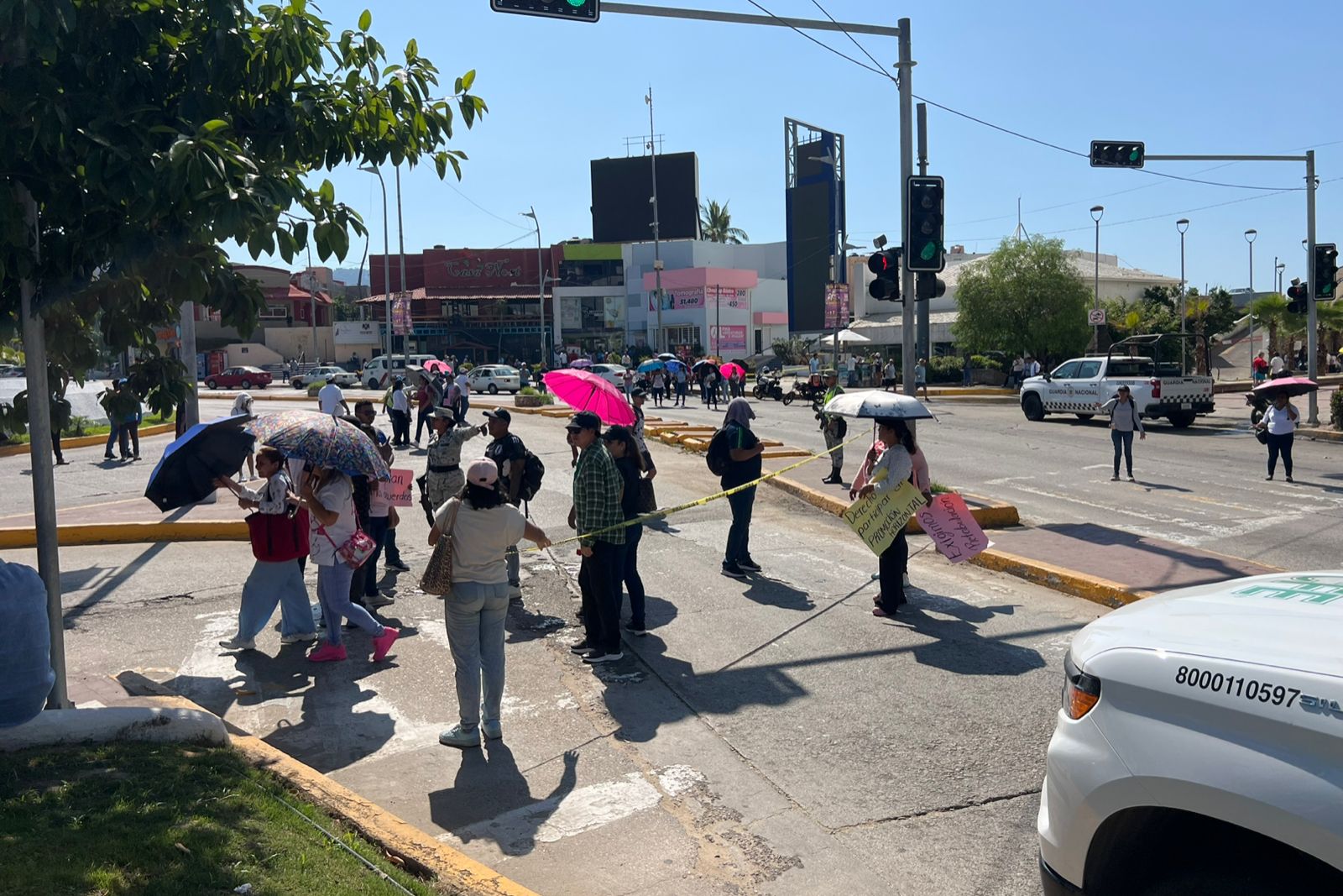 Acapulco; Gro.- Profesores de distintas secciones del SNTE realizaron un bloqueo en la glorieta de la Diana Cazadora durante 15 minutos para exigir el pago inmediato de sus prestaciones laborales y se realizara una mesa de negociación este mismo día.