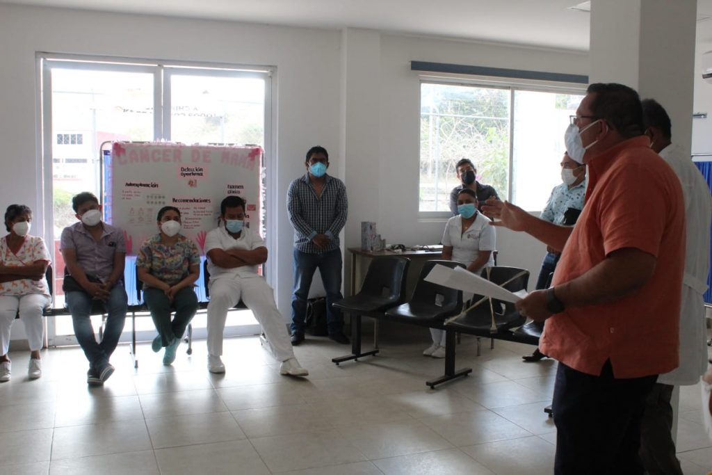 El funcionario municipal se reunió con el personal de la clínica a quienes les explicó el modelo del Instituto de Salud para el Bienestar (INSABI), además les dio a conocer que en un lapso de tres meses va a llegar equipo de especialidad y se les otorgará capacitaciones para continuar en el aprendizaje de la medicina.
