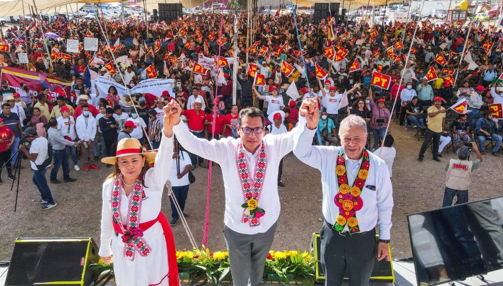 Por otro lado, cabe señalar que este acto político inicio con la marcha de la lealtad, encabezada por el diputado federal por el Partido del Trabajo (PT), Wences Real, del punto ubicado Frente al Hospital general, donde se congregaron contingentes procedentes de los 19 municipios que conforman la región montaña, quienes portaron con orgullo la bandera del PT, acompañados de sus respectivas bandas de música de viento y danzas regionales.