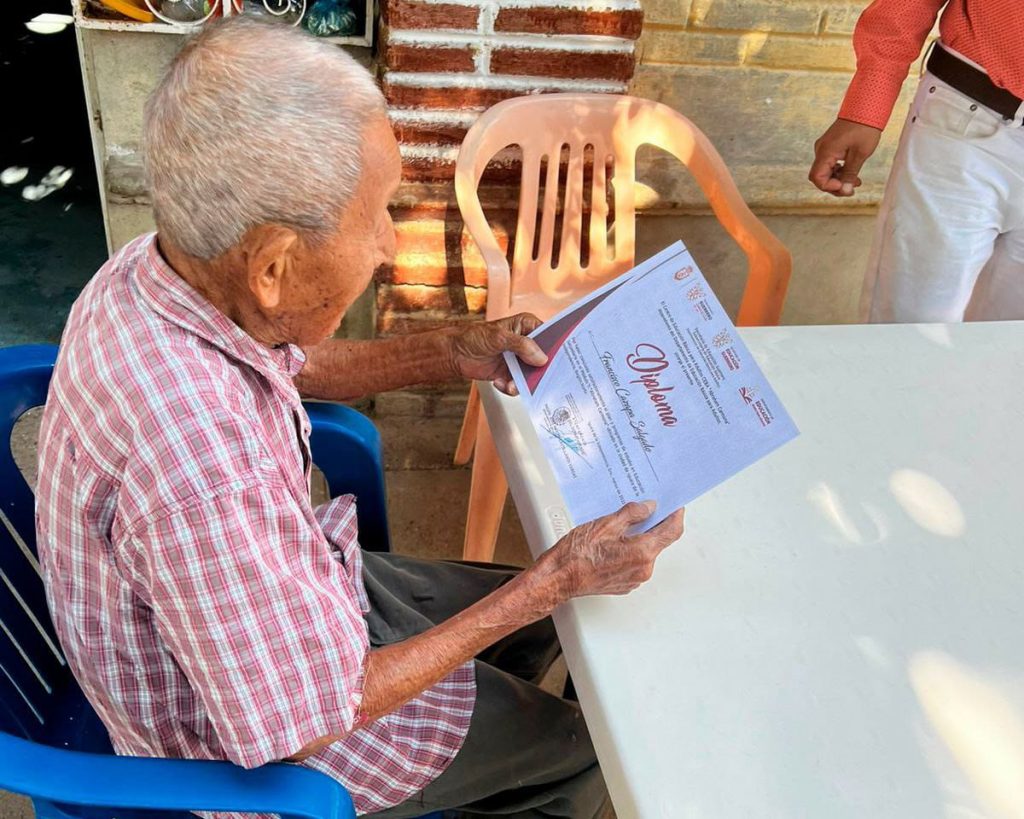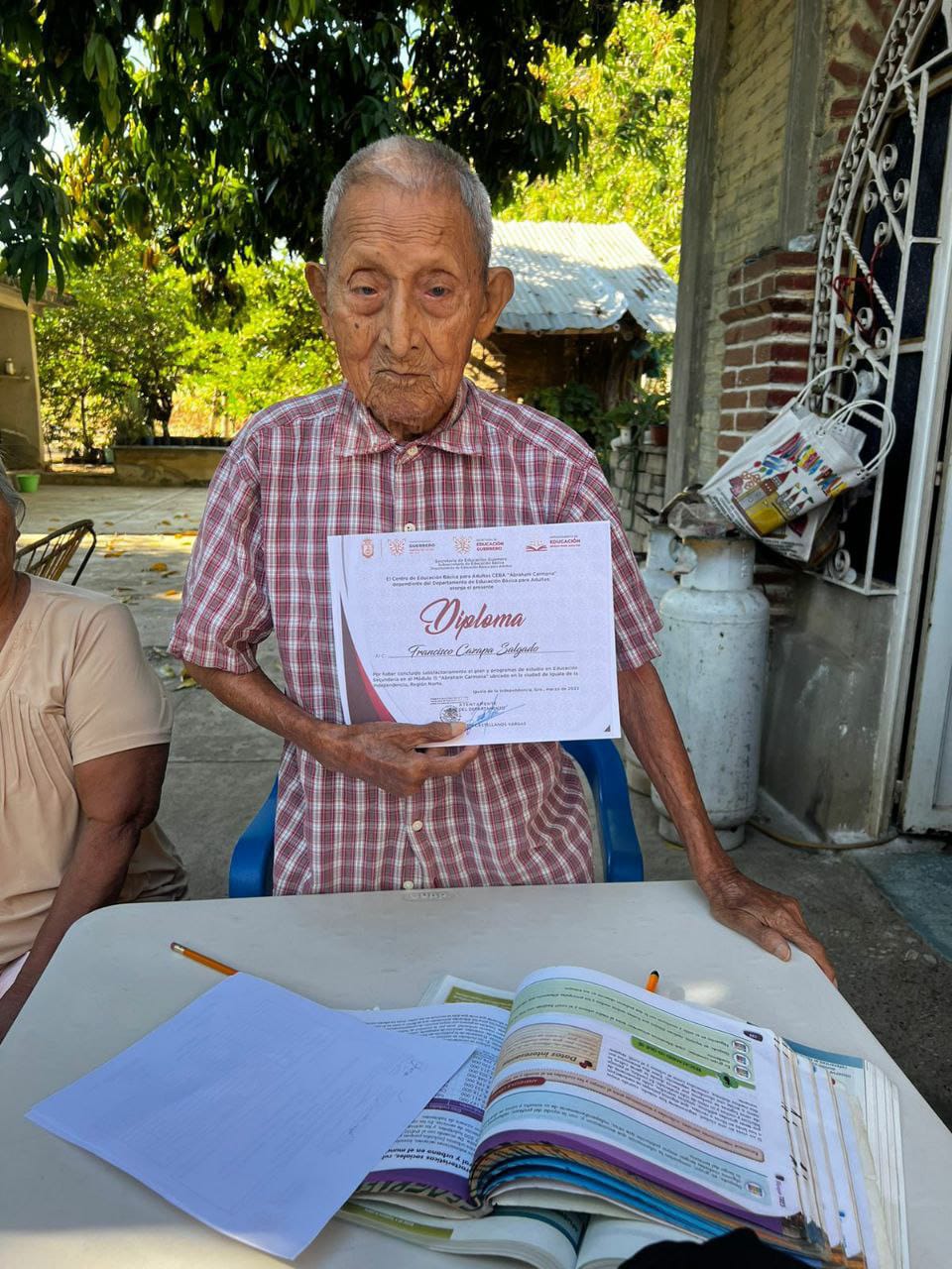 El viernes 3 de marzo don Francisco recibió un reconocimiento por parte del jefe del Departamento de Educación Básica para Adultos, José Martín Castellanos Vargas, por haber concluido satisfactoriamente su educación secundaria.