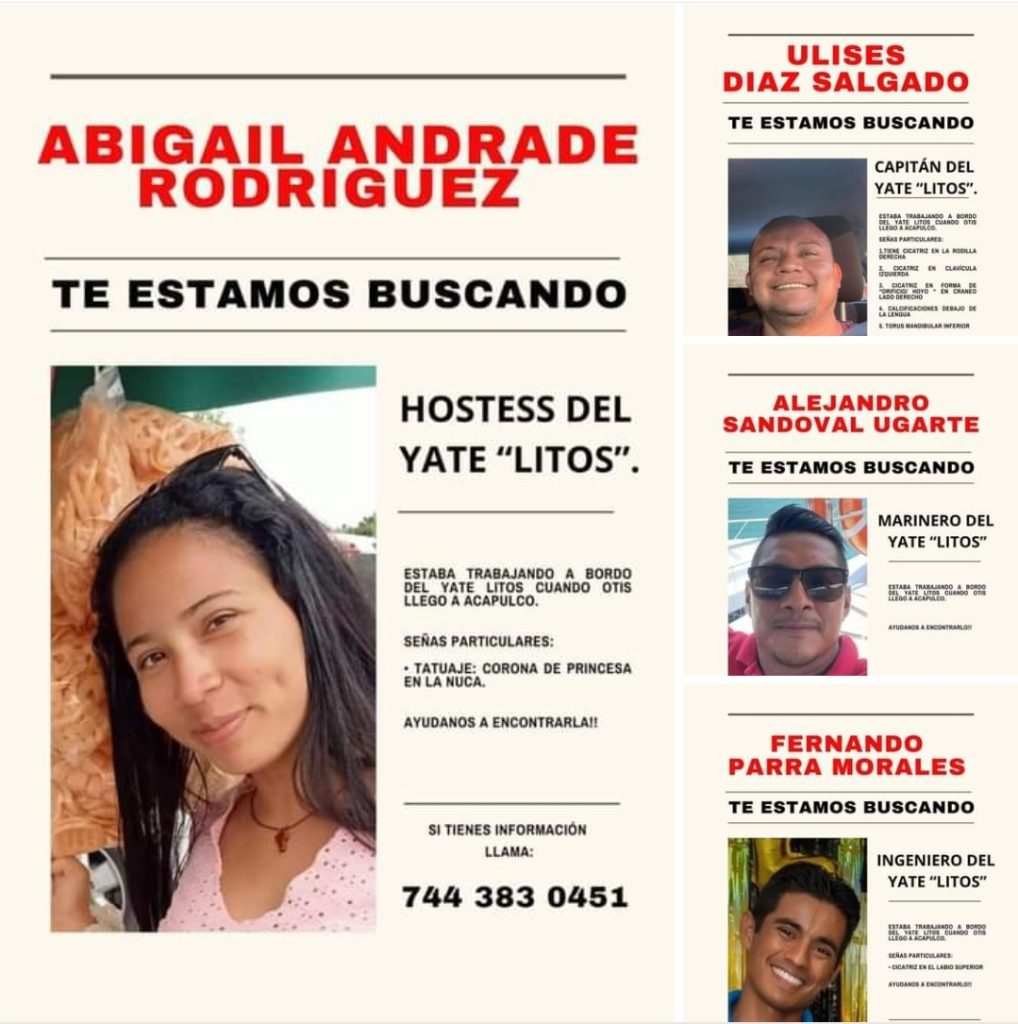 En publicaciones que circulan por la red social de Facebook buscan a cuatro tripulantes de la embarcación Litos, que al parecer se encontraban trabajando el día que el huracán tocó tierra e Acapulco.