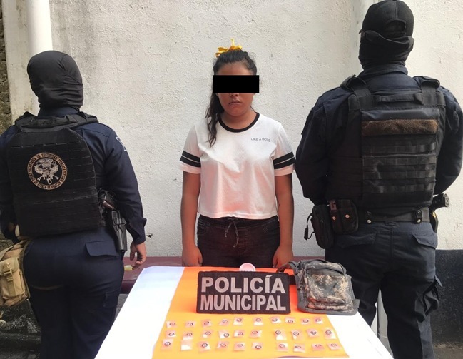 El hombre logró darse a la fuga, mientras que la joven, quien dijo llamarse Dayri “N”, detuvo la marcha y, al ser inspeccionada, se encontró en sus pertenencias una bolsa tipo piernera con 30 bolsitas de plástico que contenían una sustancia granulada con las características de la droga conocida como cristal.