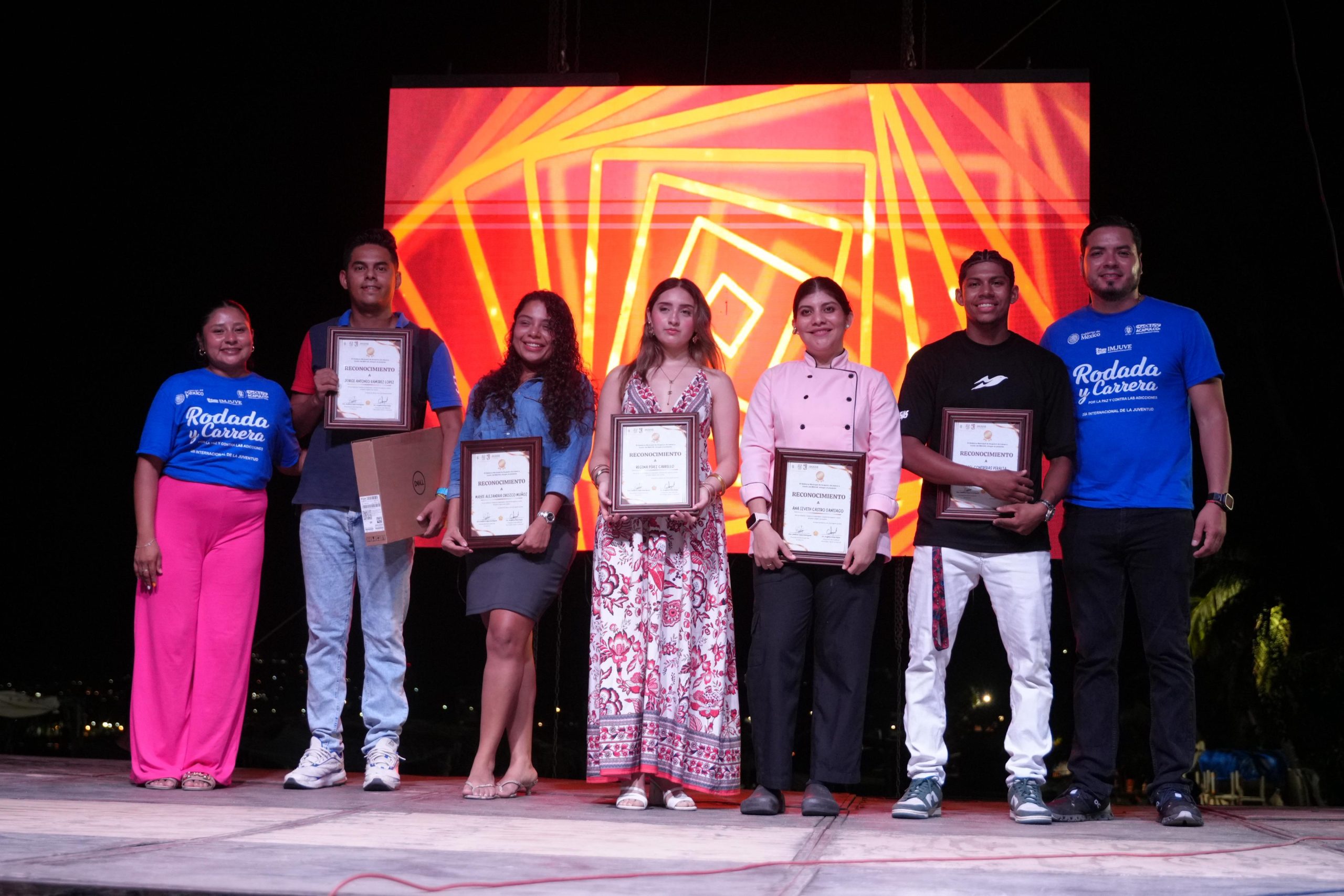 En la ceremonia de reconocimientos a “Jóvenes que Inspiran”, en representación de la presidenta Abelina López Rodríguez, la directora de IMJUVE, Angélica Díaz Rojas, y el subsecretario de Asuntos Políticos y Religiosos, Jorge Vázquez Way, rindieron homenaje a jóvenes destacados por su talento y compromiso. Entre ellos se encontraban el artista clown Javier Suárez Herrera, creador de “Rajita Show”; la maquillista profesional Alejandra Orozco; el artista urbano José Isaías Sánchez; la chef repostera Ana Ivette Castro; el artista drag e imitador Joel Contreras, conocido como “Gala Glamour”; la actriz acapulqueña Regina Pérez y el clavadista de La Quebrada, Jorge Ramírez.
