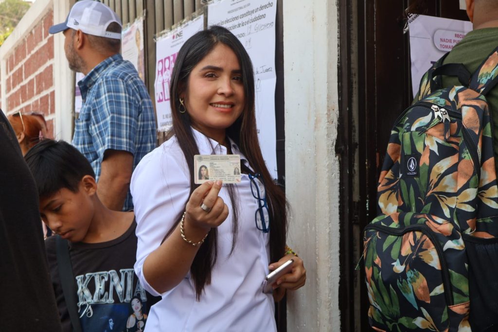 La candidata a diputada federal por el distrito 04, Yoloczin Domínguez Serna emitió su voto en la casilla de la sección 100, ubicada en el Interior del jardín de niños “María Elena Chávez”.Ahí, el proceso fue tranquilo y sin contratiempo. En las casillas especiales hubo filas de hasta 200 personas.