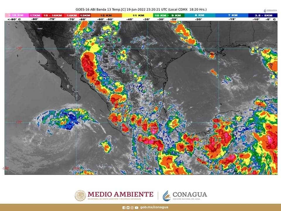 A las 19:00 horas, la depresión tropical “Celia” se localizó a 385 kilómetros al sur de Barra de Tonalá, Chiapas, presentó vientos máximos sostenidos de 45 Kilómetros por hora, rachas de 65 kilómetros por hora y desplazamiento hacia el oeste a 17 kilómetros por hora.