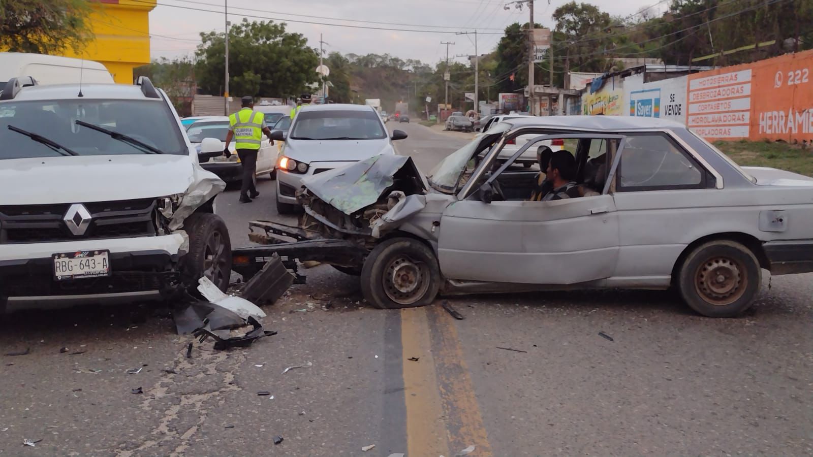 Los vehículos involucrados fueron una camioneta Ranault y un Tsuru, provocando que el conductor del vehículo compacto quedara prensado al interior de la unidad.