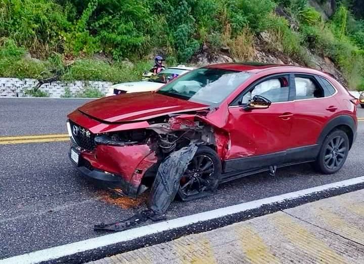 Acapulco,Gro., a 05 de octubre del 2023.-La mañana de este jueves, dos vehículos se impactaron cuando circulaban sobre la carretera Escénica dejando como saldo dos personas lesionadas y daños materiales de consideración en ambas unidades.