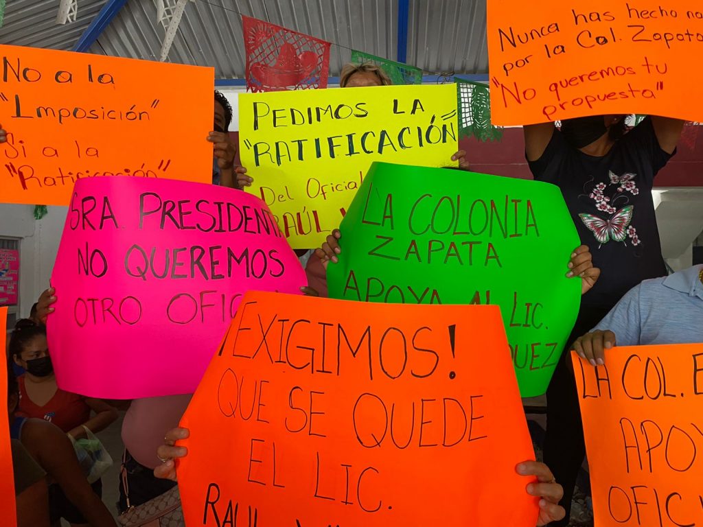 El delegado municipal de la Zapata, Ricardo Alarcón Alvarado advirtió que los habitantes no permitirán la llegada de la nueva oficial a quien sólo identificaron como Guadalupe, y de quien dijeron fue propuesta presuntamente por Pedro Manuel Higuera y no vive en esa colonia.