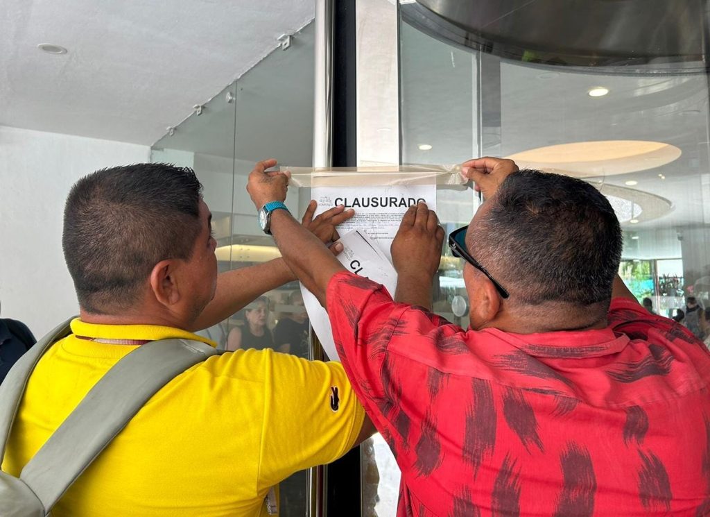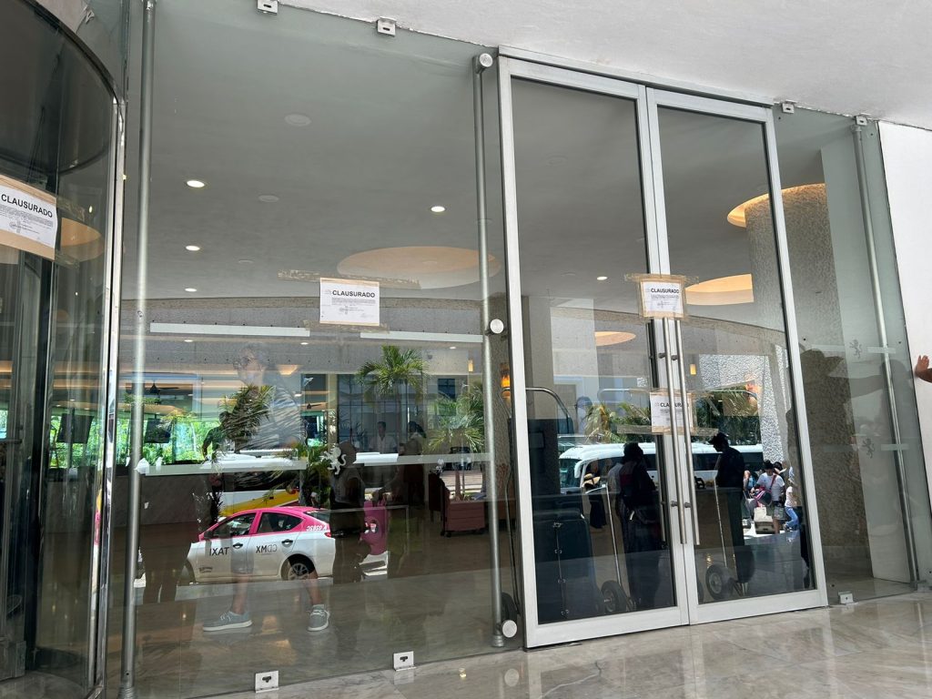 Inspectores de esta dependencia colocaron los sellos de clausura en las puertas de acceso al hotel, sin embargo ante la presencia de huéspedes dejaron abiertos dos accesos para la entrada y salida de los turistas.