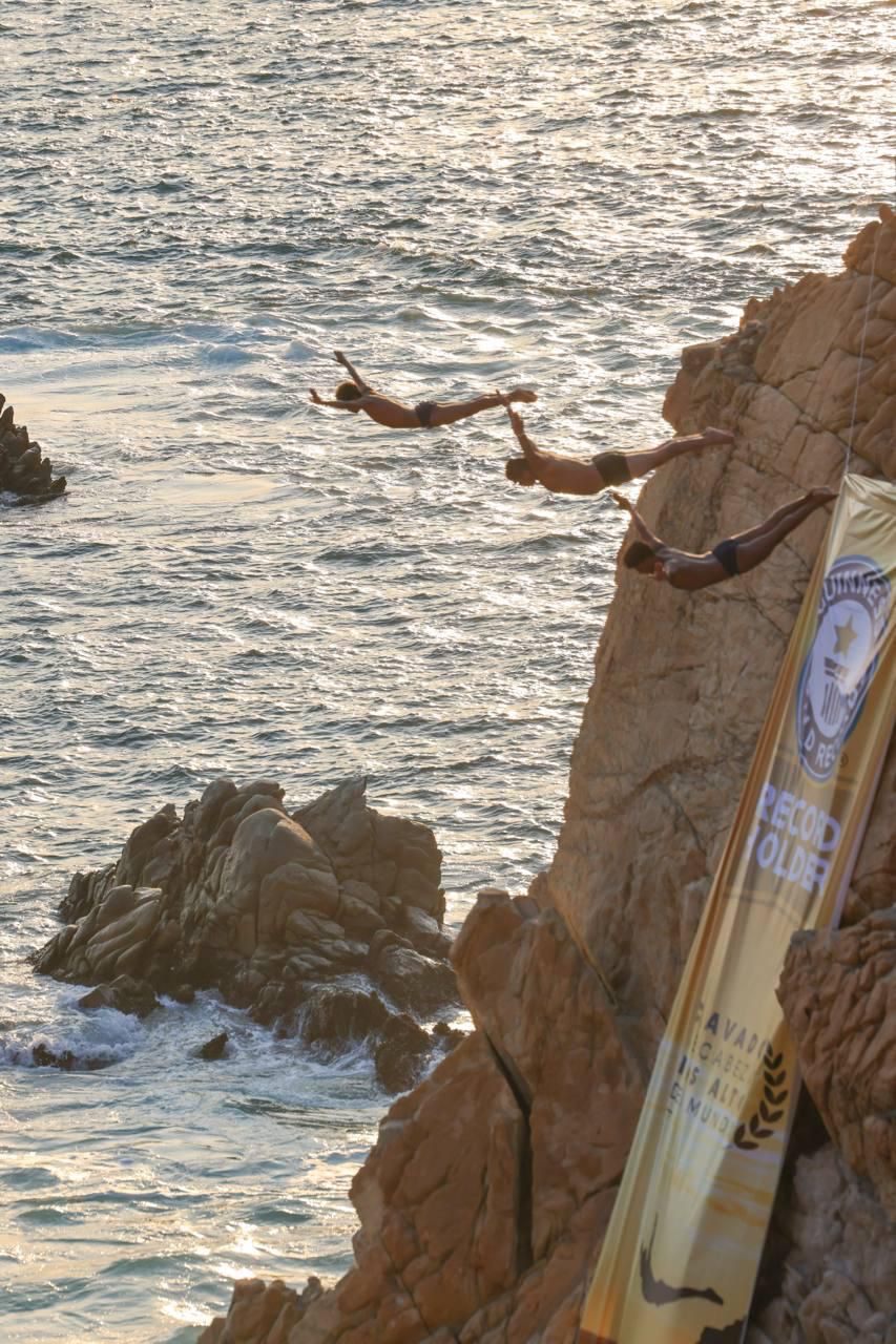 Acapulco; Gro., a 15 de abril del 2025.- La Asociación de Clavadistas Profesionales de La Quebrada fue reconocida oficialmente por Guinness World Records por realizar un clavado tres veces más alto que un clavado olímpico, en condiciones extremas que implican caer en una profundidad cuatro veces menor.