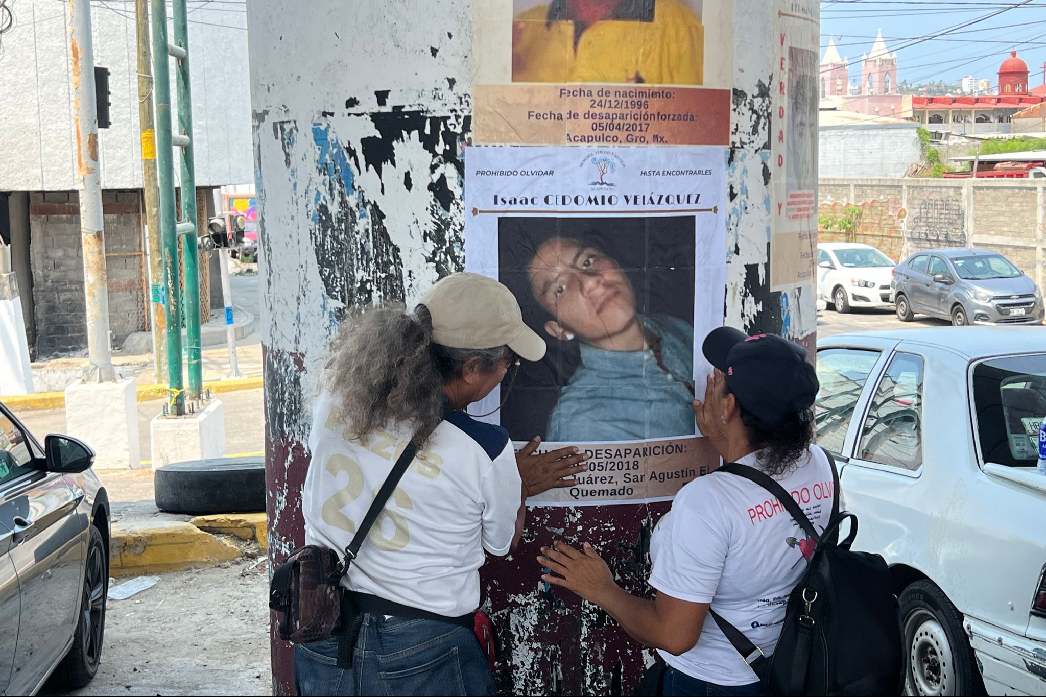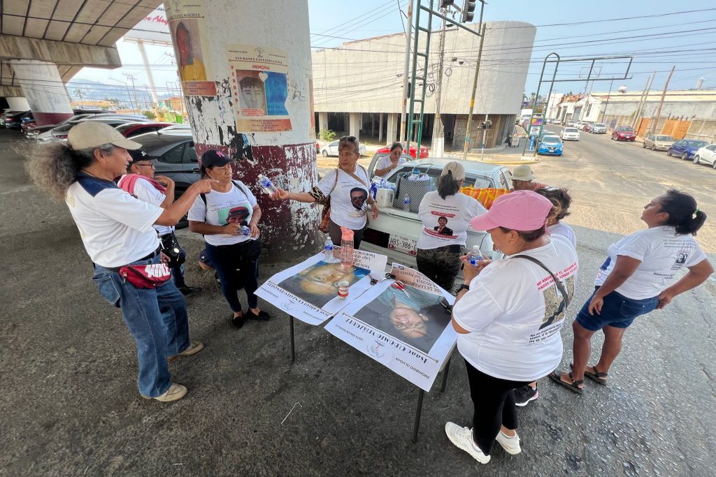 Acapulco; Gro.- Madres de familia del Colectivo Memoria, Verdad y Justicia realizaron la pega de fichas de búsqueda de sus desaparecidos abajo del puente de la Vía Rápida, para generar un acto de reflexión entre los ciudadanos acapulqueños.