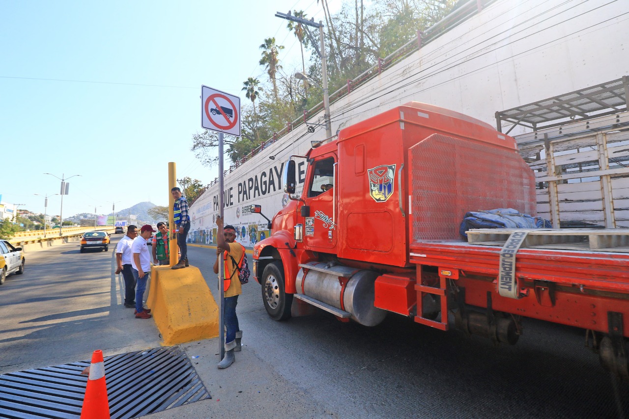 Acapulco, Gro., 12 de enero de 2023.- Con la finalidad de salvaguardar la integridad de la población y evitar accidentes automovilísticos, el Gobierno Municipal, a través de la Coordinación de Movilidad y Transportes, instaló señalamientos para restringir la circulación de unidades pesadas, superior a las 3.5 toneladas, en los diversos puentes de la ciudad.