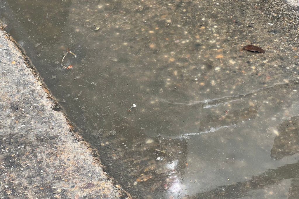 Cabe resaltar que sobre la avenida Costera Miguel Alemán continúan algunos encharcamientos de agua donde se percibe un fuerte olor a grasa además de que se dificulta la circulación pues el carril se encuentra resbaloso.