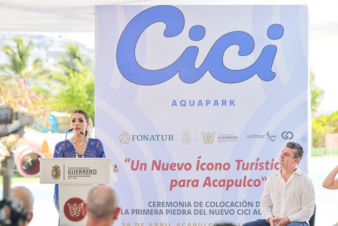 Acapulco, Gro., 29 de abril de 2026.- Derivado de la coordinación de esfuerzos entre las distintas instancias, la gobernadora Evelyn Salgado Pineda junto a la secretaria de Turismo federal, Josefina Rodríguez Zamora y el director general del Fondo Nacional de Fomento al Turismo (FONATUR), Sebastián Ramírez Mendoza, colocaron la primera piedra del proyecto Cici Aquapark, una obra que busca recuperar un ícono de la memoria colectiva mexicana, así como reactivar este importante atractivo turístico de Acapulco.