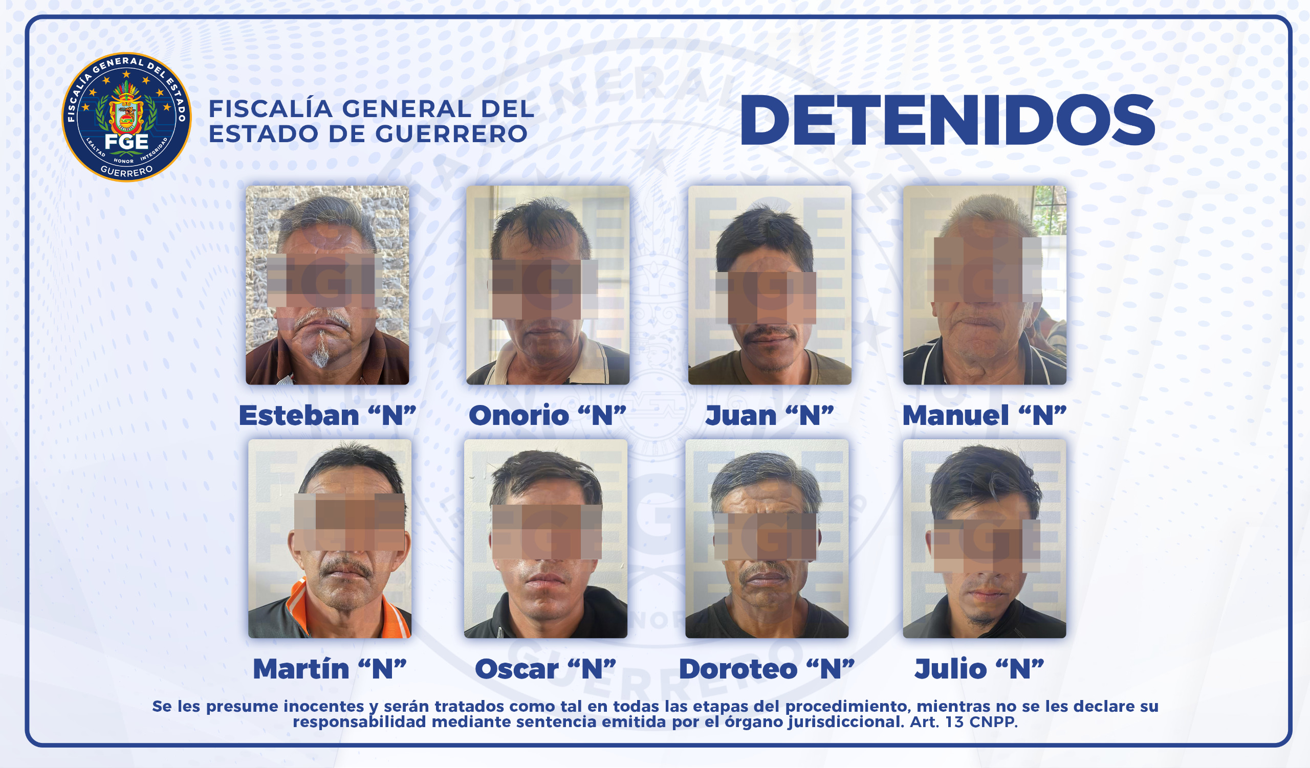 Los ocho hombres junto con lo asegurado fueron puestos a disposición del Ministerio Público de la FGEGuerrero para la integración de la carpeta de investigación correspondiente.