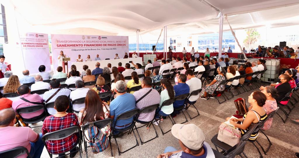 Chilpancingo, Gro., 11 de mayo del 2023. – Para seguir transformando la seguridad social en Guerrero, la gobernadora Evelyn Salgado Pineda realizó la entrega de pagos únicos por concepto de devoluciones de cuotas, marcha y póliza e indemnizaciones globales a 353 beneficiarios del ISSSPEG por un monto de 15.7 millones de pesos, como parte del saneamiento financiero de este instituto, cuyas prestaciones no se habían pagado desde el 2015.