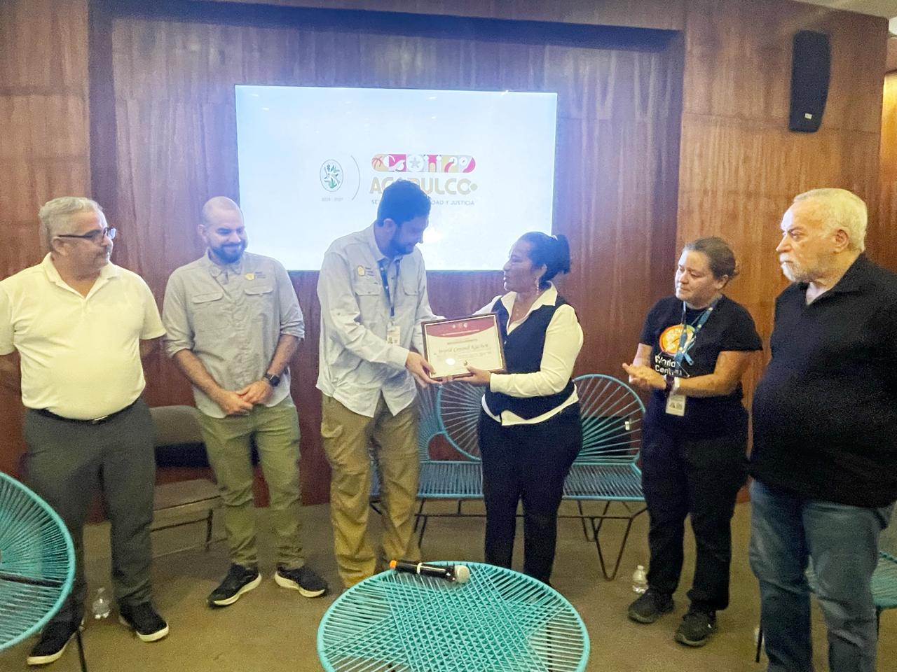 Al finalizar el conversatorio, la Presidenta Municipal entregó un reconocimiento a Juan Camilo Jiménez y a su equipo de colaboradores, por la ardua labor de World Central Kitchen en Acapulco, con la entrega de 5 millones de raciones calientes a damnificados.