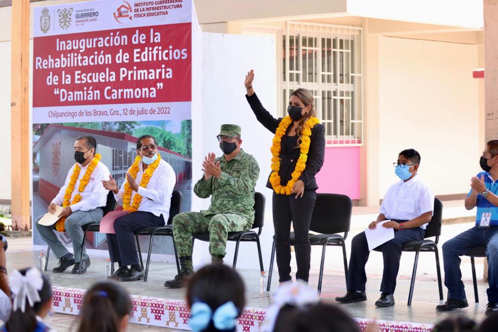 El Director General del IGIFE, Martín Vega González, puntualizó que el gobierno que encabeza Evelyn Salgado Pineda está convencido que la educación es el motor de un cambio social, por ello, el mejoramiento de la infraestructura física y educativa a la Escuela Primaria “Damián Carmona” consistió en reparaciones generales de nueve aulas didácticas y que se ubica al interior de la 35 zona Militar en Chilpancingo.