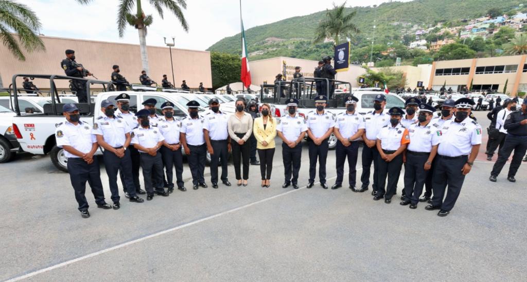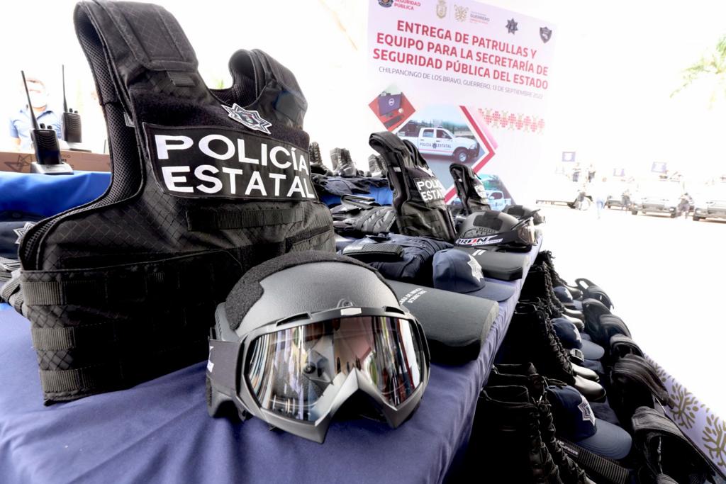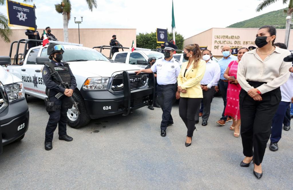 Con una inversión de 215 millones de pesos, la mandataria estatal entregó a la Secretaría de Seguridad Pública de Guerrero, un total de 72 patrullas nuevas, 8 mil 826 uniformes completos, 190 equipos de protección, 240 cascos y 240 chalecos balísticos, así como 92 equipos de radio comunicación, además de 40 computadoras para la Universidad Policial del Estado.
