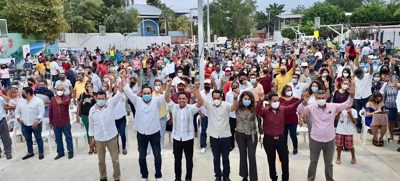Al tomarle protesta, quienes lo acompañaron el domingo pasado a la cancha abierta de la Unidad Deportiva Jorge campos en Ciudad Renacimiento, se comprometieron a ir a hablar y sustituir las dádivas, por el debate y la inversión.