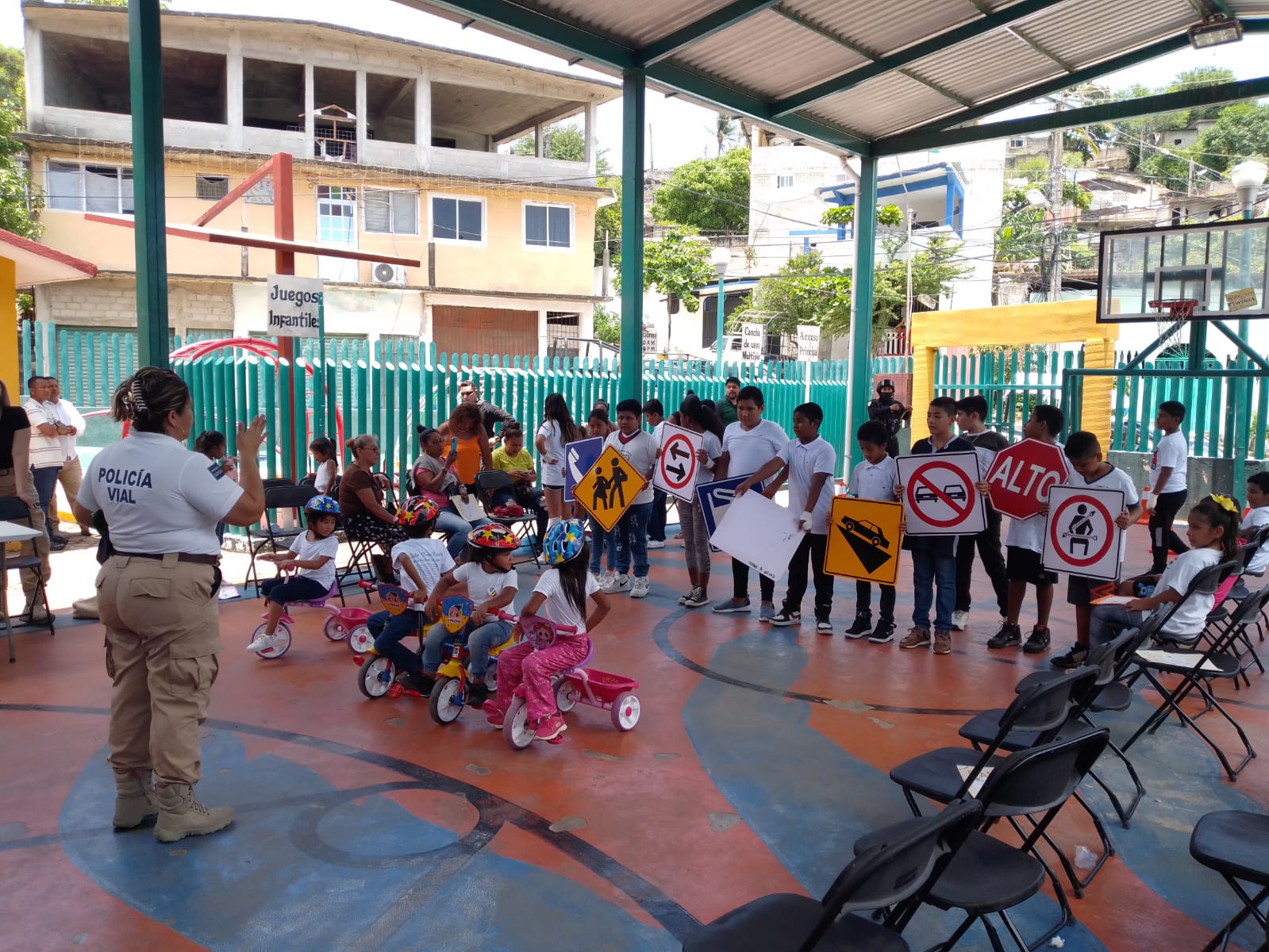 En las canchas de las colonias Ampliación Emiliano Zapata, Simón Bolívar y 16 de Marzo, el personal preparó actividades de activación física, robótica, cuenta cuentos, primeros auxilios, cultura vial e igualdad y equidad.