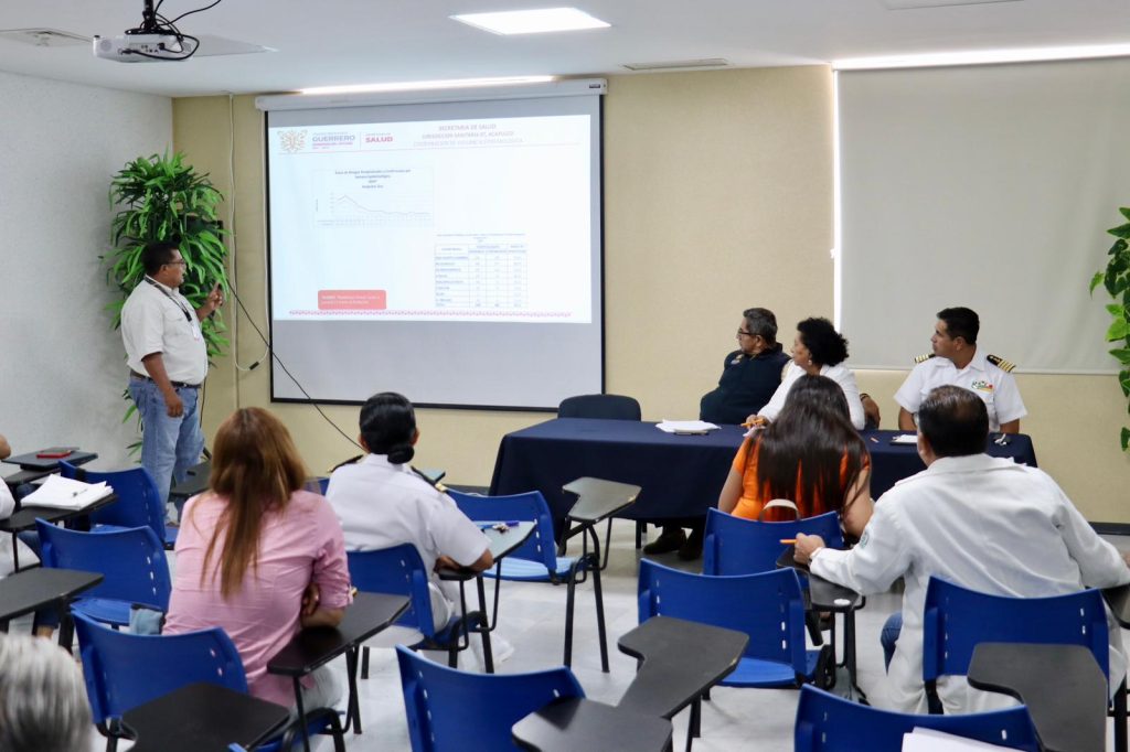 Acapulco, Gro., 11 de junio de 2024.- Durante la reunión de trabajo con el Comando estatal de gestión de incidencias para atender el Dengue en el Estado, se dio a conocer que se continúa con la difusión de información para prevenir y controlar el dengue en la entidad, así mimo se informó que se cuenta con el apoyo de los ayuntamientos quienes participan con la eliminación de criaderos en panteones y en acciones de descacharrización permanentes en las localidades prioritarias.