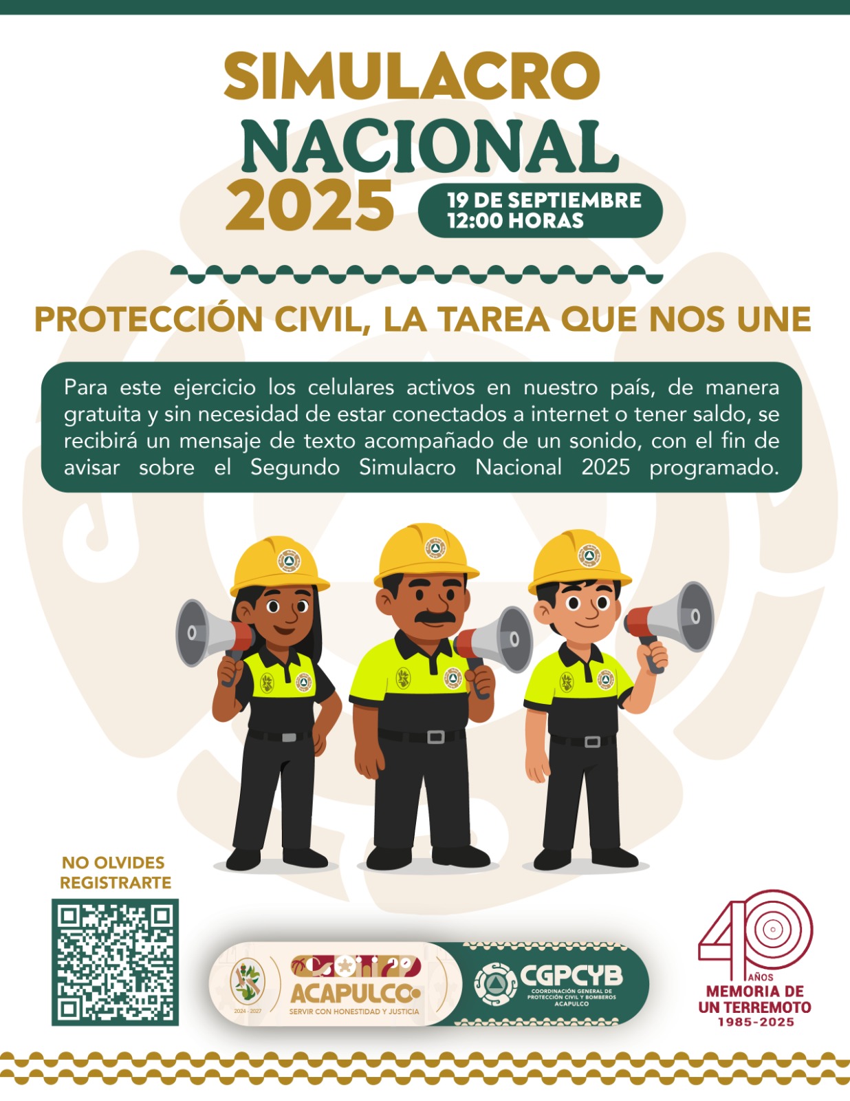 La Coordinación General de Protección Civil y Bomberos, en conjunto con los tres órdenes de gobierno, convoca a la población a este ejercicio, mediante el cual se fortalece la cultura de la prevención.