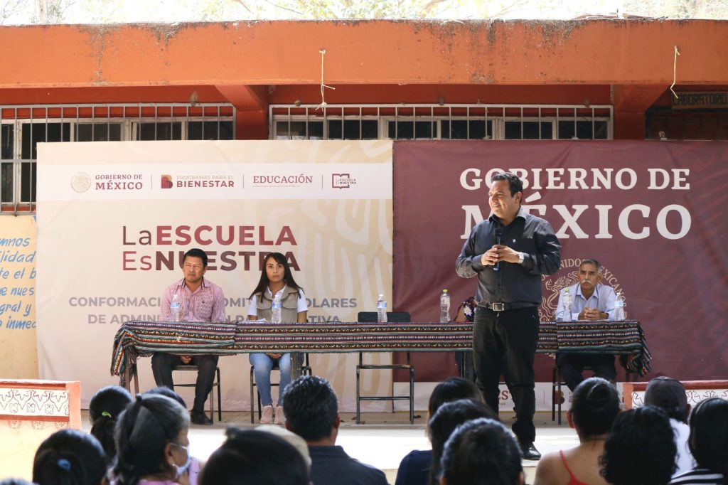 Petaquillas, Guerrero, 09 de marzo de 2023.-El delegado federal de Programas para el Bienestar, Iván Hernández Díaz, asistió a la conformación de los Comités de Administración Participativa del Programa La Escuela es Nuestra (LEEN), en la Secundaria Técnica 80 “Australia”, en Petaquillas, municipio de Chilpancingo.