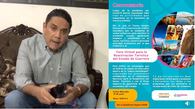Chilpancingo, Gro. 09 de junio de 2020.- Será el miércoles de esta semana cuando el Frente Amplio Democrático Guerrerense (FADG) lleve a cabo el Foro Virtual para la Reactivación Turística del Estado, con la participación de especialistas del ramo y con el objetivo de fortalecer al principal sector económico de Guerrero.