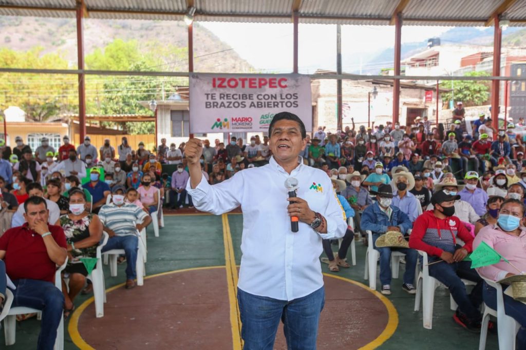 La Sierra de Guerrero, 27 mayo 21.- Tras ser recibido con amplias muestras de cariño y respaldo a su proyecto, el candidato de la alianza PRI-PRD, Mario Moreno Arcos firmó un decálogo de compromisos con la sierra en su natal Izotepec.