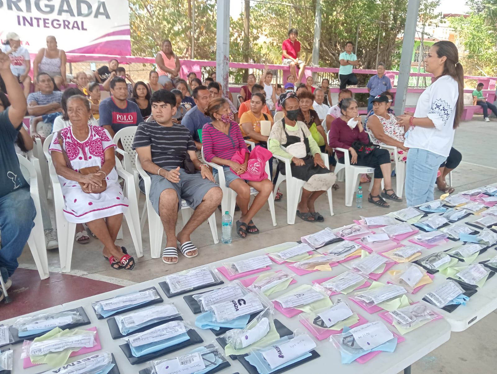 Martínez Pacheco, junto a su equipo de trabajo, realizaron la entrega de 100 pares de lentes graduados para los vecinos que acudieron a la Brigrada Integral, que se llevó a cabo el pasado 21 de febrero en la cancha techada de este poblado de La Sabana.
