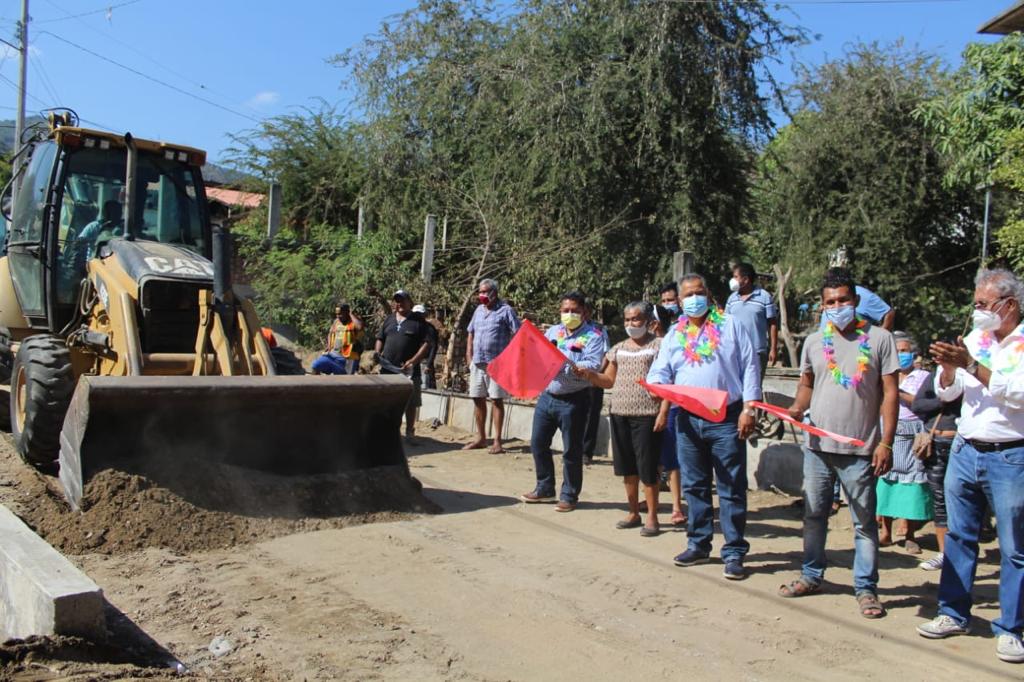 Acapulco, 01 de febrero de 2021.- Víctor Aguirre Alcaide, dio banderazo de inicio del trabajo de pavimentación en la calle Progreso de la colonia Porvenir en el poblado de Llano Largo.