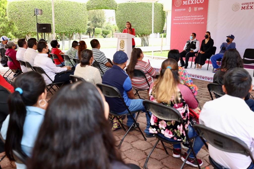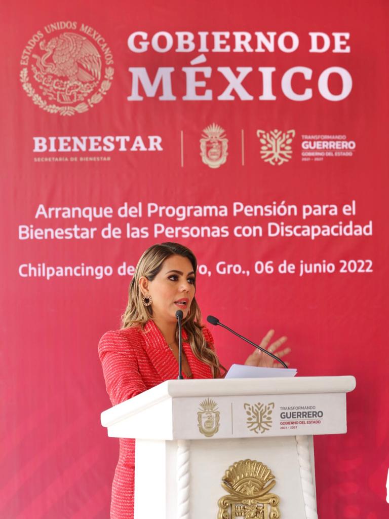 Chilpancingo, Gro., 06 de junio de 2022. – La gobernadora Evelyn Salgado Pineda, dio arranque en Guerrero al Programa de Pensión para el Bienestar de Personas con Discapacidad, que de manera histórica y sin precedentes se entregará de forma universal en la entidad, con una meta a incorporar este 2022 a 77 mil 169 beneficiarios, que representa una inversión directa para el Gobierno del Estado, superior a los 378 millones de pesos anuales, que se suma a la misma cantidad que aportará la federación.
