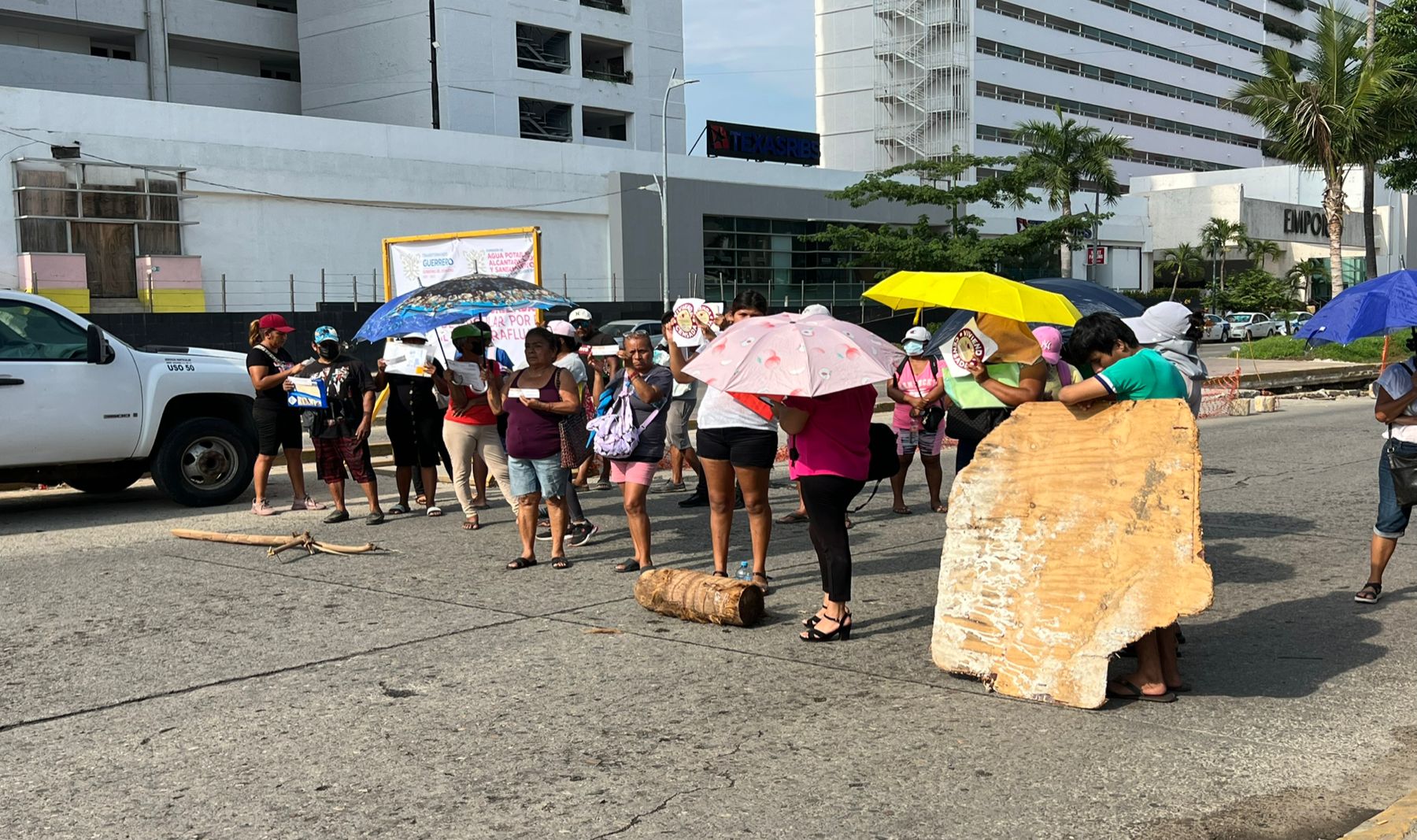 Vecinos de colonias suburbanas de Acapulco, afectados por el huracán John, bloquearon la avenida Costera Miguel Alemán, en sentido Base – Centro, para exigir el pago del censo realizado por el gobierno federal.