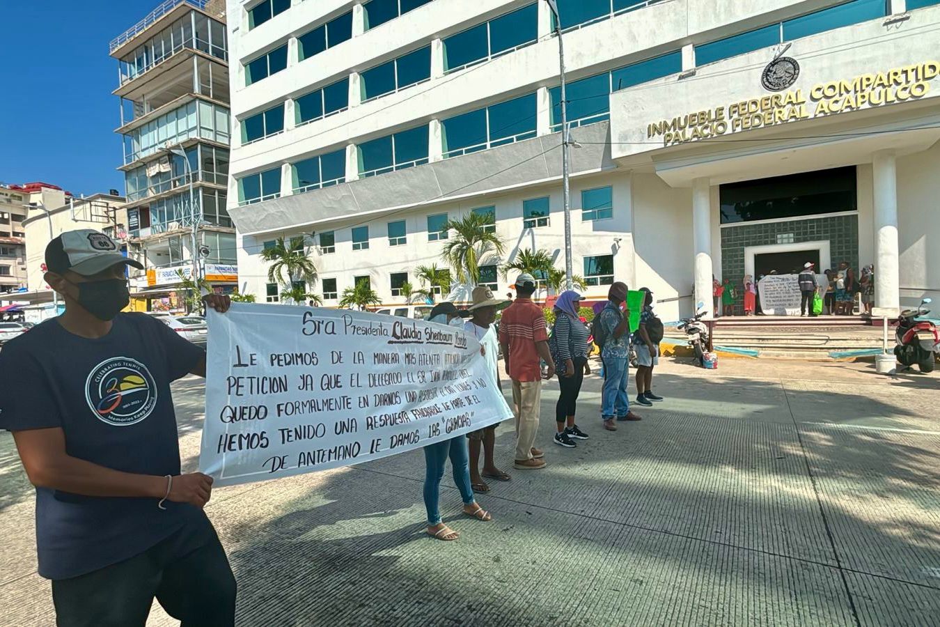 Acapulco; Gro.- Un grupo de personas que resultaron afectados tras el paso del huracán John en Acapulco, realizaron un bloqueo en la avenida Costera Miguel Alemán justamente frente a las instalaciones del Palacio Federal.