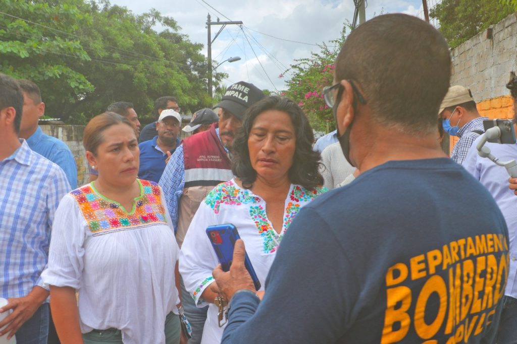 Abelina López expresó a los pobladores y comisario municipal de La Venta, Juan Luis Delgado Fierro, que cuentan con el Gobierno Municipal y que trabajarán coordinadamente para ayudar a los damnificados que perdieron sus viviendas.