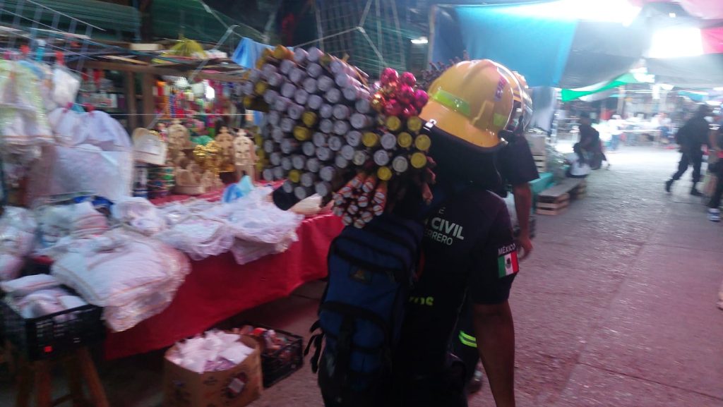 Se instrumentó un operativo en las inmediaciones del mercado de Chilapa, luego de una denuncia telefónica que reportó una considerable cantidad de material pirotécnico almacenado en cajas y costales que eran vendidos de manera ilegal, representando un riesgo para locatarios y visitantes por no cumplir con las medidas de seguridad protocolarias.