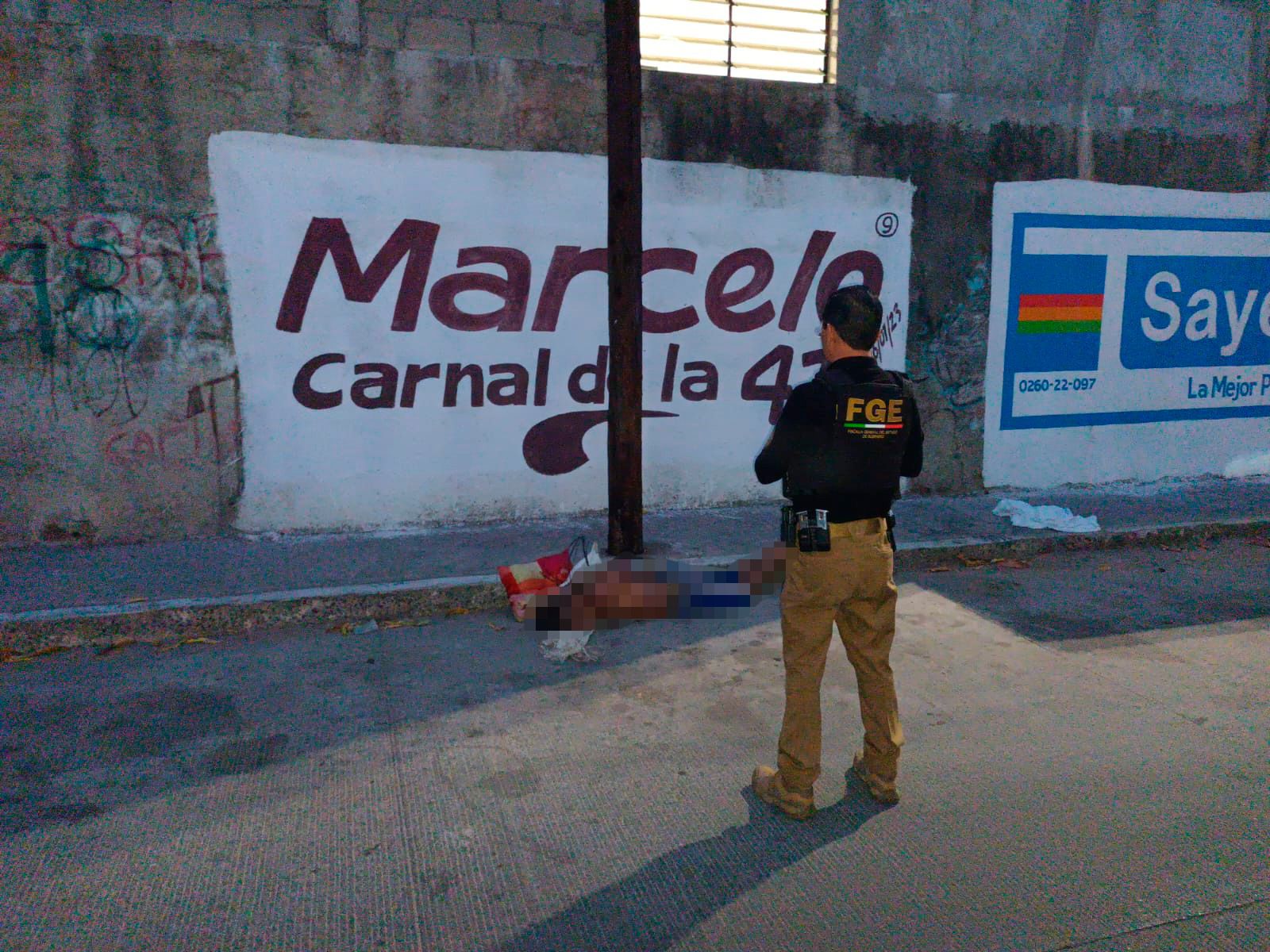 Al lugar arribaron elementos del Ejército, Policías Estatales y Ministeriales quienes confirmaron el hecho y localizaron a un hombre tendido boca abajo a orilla de la calle.