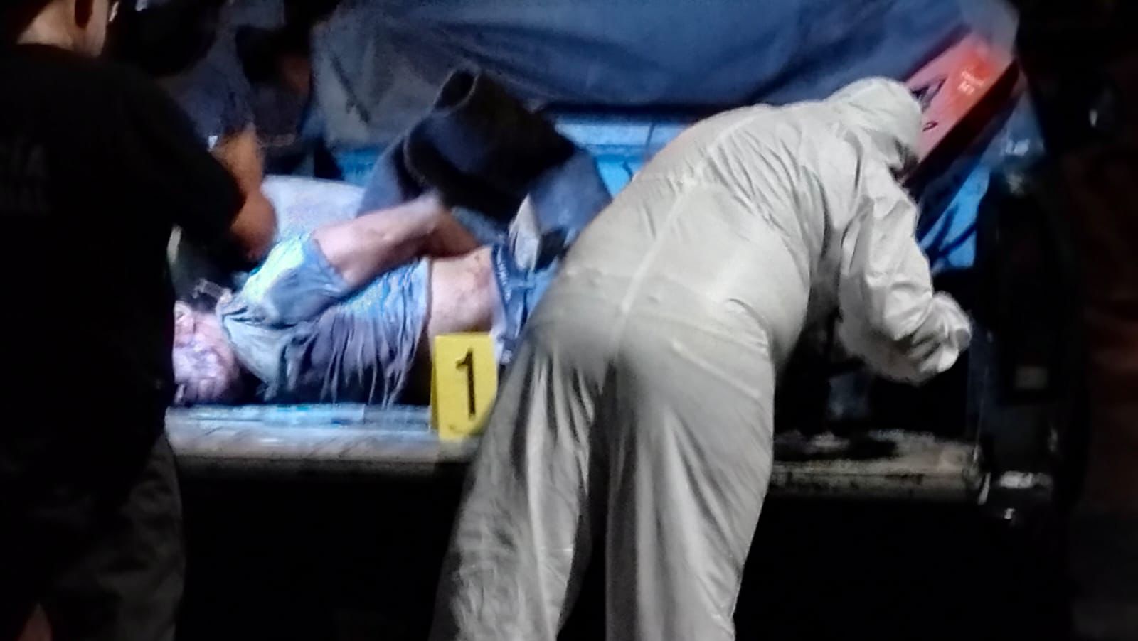 Los agentes policiacos al revisar la unidad, encontraron en la parte trasera, en la batea, el cuerpo de un hombre asesinado y envuelto con una cobija negra.
