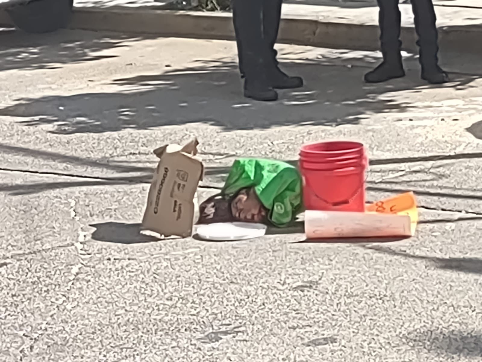Al lugar arribaron Policías Estatales, efectivos de La Marina y Policías Ministeriales quienes confirmaron el hecho y localizaron sobre la calle la cabeza al parecer de un hombre junto a una cubeta y una bolsa verde.
