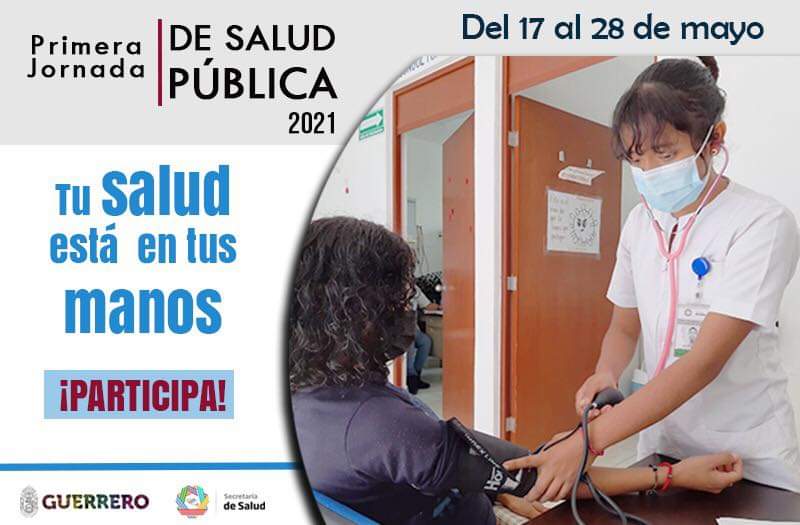 Chilpancingo, Gro. 20 de mayo del 2021.- Como cada año, y con el lema “Tu salud está en tus manos”, del 17 al 28 de mayo en todo el país se lleva a cabo la Jornada Nacional de Salud Pública, con la participación de todo el sector salud de los tres niveles de gobierno.