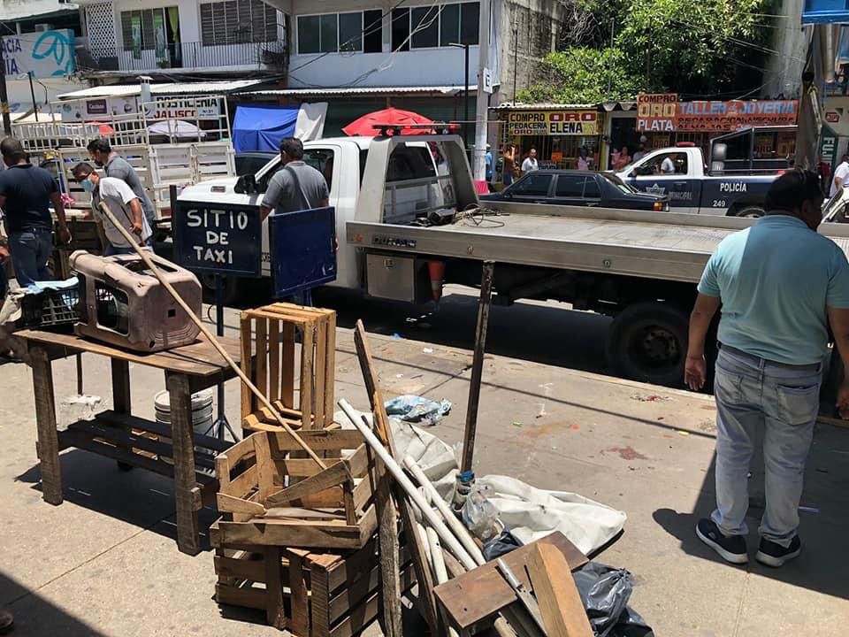 Acapulco, Gro., a 14 de julio de 2022.- Personal de la dirección de Vía Pública de Acapulco, desalojó a comerciantes de puestos semi fijos que se encontraban establecidos frente a la tienda departamental Coppel Bahía, en la calle Aquiles Serdán de la colonia Centro de la ciudad.