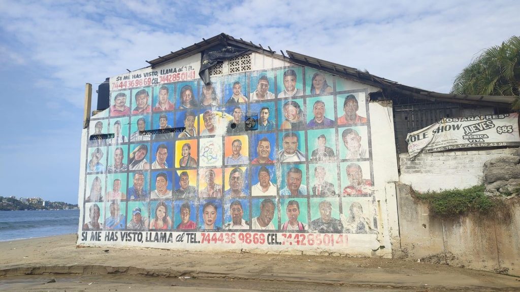 Acapulco,Gro., a 31 de mayo del 2022.-Luego de que las fuertes lluvias descubrieran el mural de los familiares de desaparecidos ubicados en la costera Miguel Alemán en donde artistas plasmaron los rostros de 52 personas que se encuentran desaparecidas desde hace varios años.