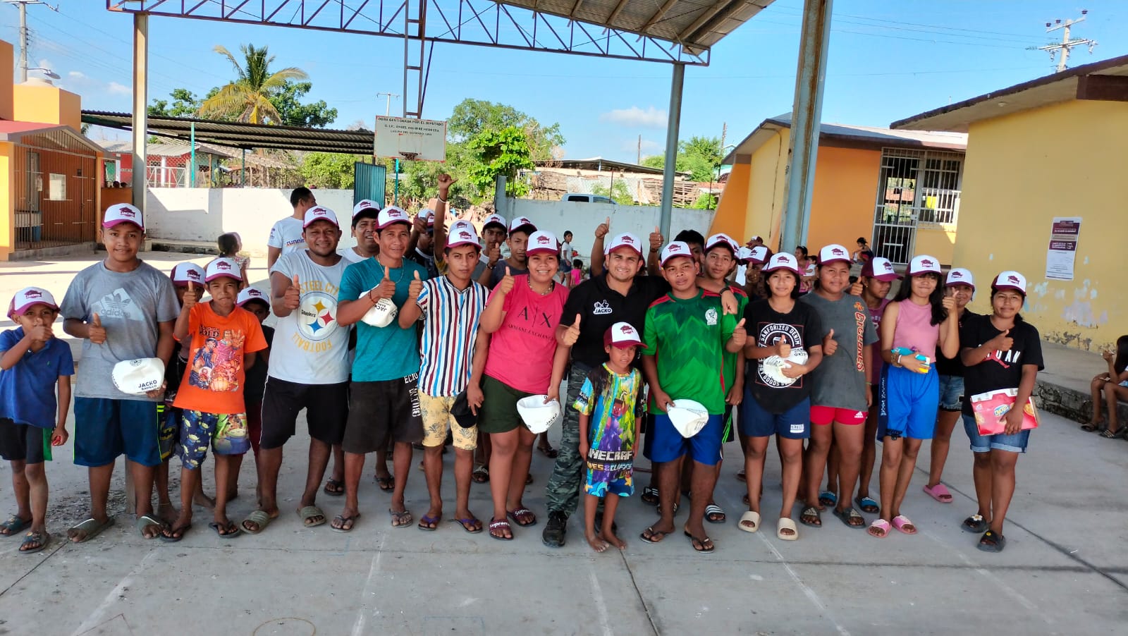 Niños, jóvenes, adultos mujeres y hombres, así como personas de la tercera edad se dieron cita en la cancha del lugar, en donde además de los apoyos alimentarios y algunos regalos, Jacko Badillo entregó material deportivo a los jóvenes, con quienes estableció el compromiso de apoyarlos para que sigan en la práctica del deporte.
