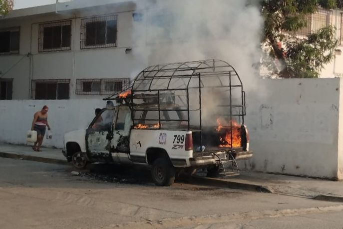 Acapulco; Gro.- Sujetos desconocidos prendieron fuego a una camioneta de pasajeros que se encontraba estacionada en la colonia Emiliano Zapata del puerto de Acapulco.