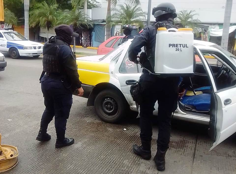 Además de la desinfección del transporte público, elementos de las direcciones de la Policía Vial, Preventiva y Turística entregan cubrebocas, se aplican gel antibacterial y se exhorta a conductores y usuarios a no bajar la guardia, siguiendo los lineamientos sanitarios para cuidar su salud y la de sus familias.