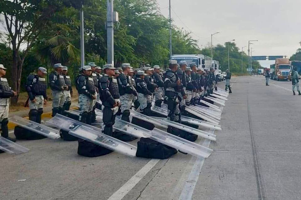 “Llegamos para hacer el bloqueo aquí en la caseta de la venta y nos encontramos con la triste noticia de que el gobierno nos recibe con la Guardia Nacional son casi 100 elementos de antimotines y se nos comentó que van a llegar en total de 400 elementos para quitarnos”, explicó.