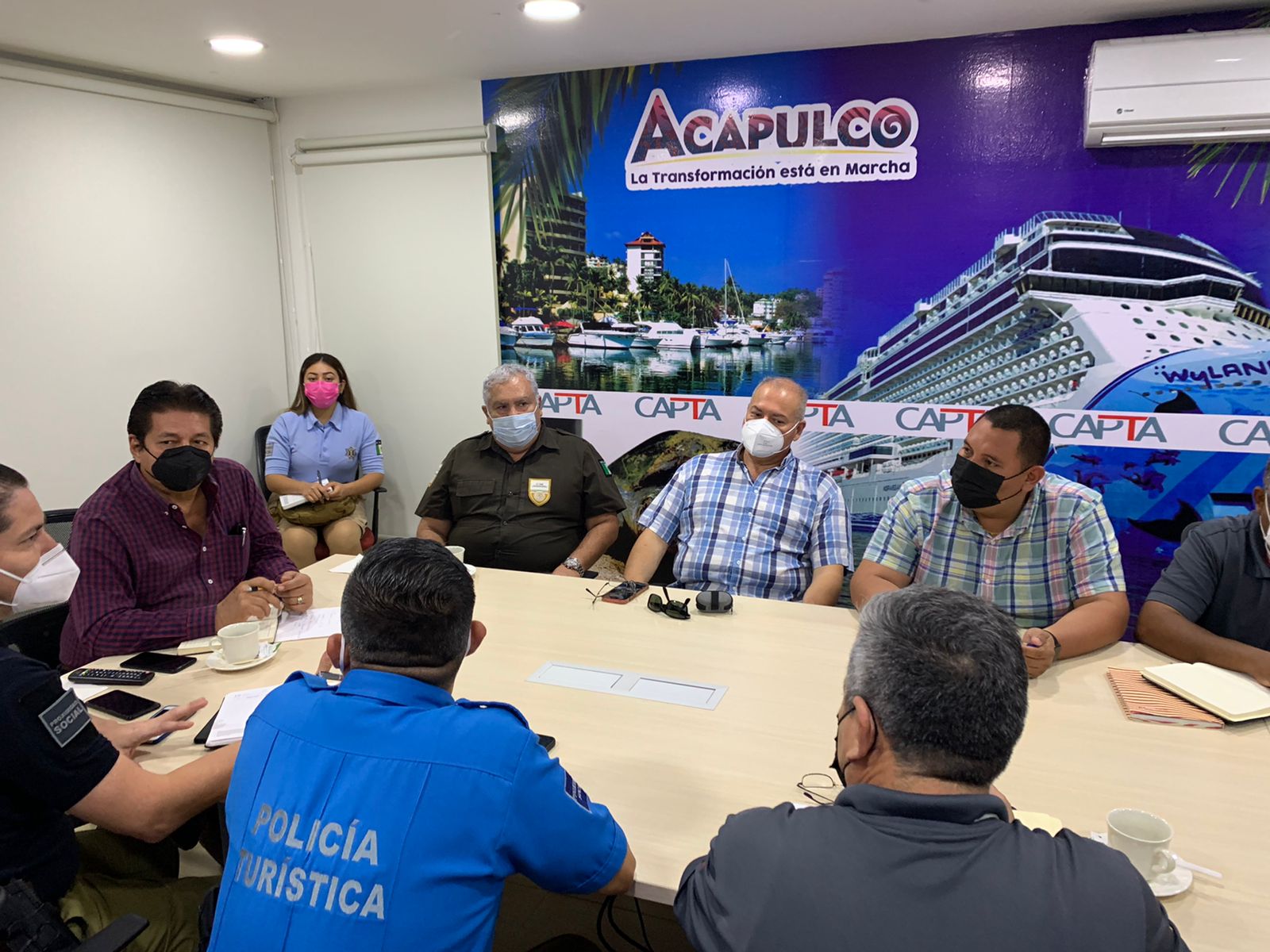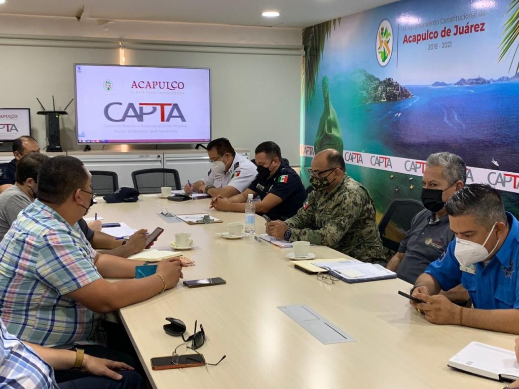 En la sala de juntas del Centro de Atención y Protección al Turista de Acapulco (CAPTA), las instancias de seguridad de los tres órdenes de gobierno, tour operadores y representantes de la Secretaría de Turismo Municipal, realizaron una mesa de trabajo donde se estableció una línea de acción para cada autoridad en el ámbito de su competencia.